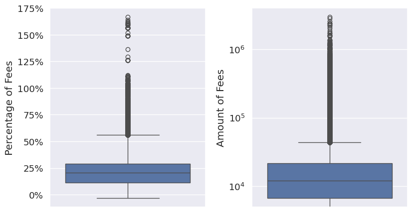 Figure 3: The proportion and amount of fees that the consumer pays on their consumer loan in the addition to the principal loan amount.