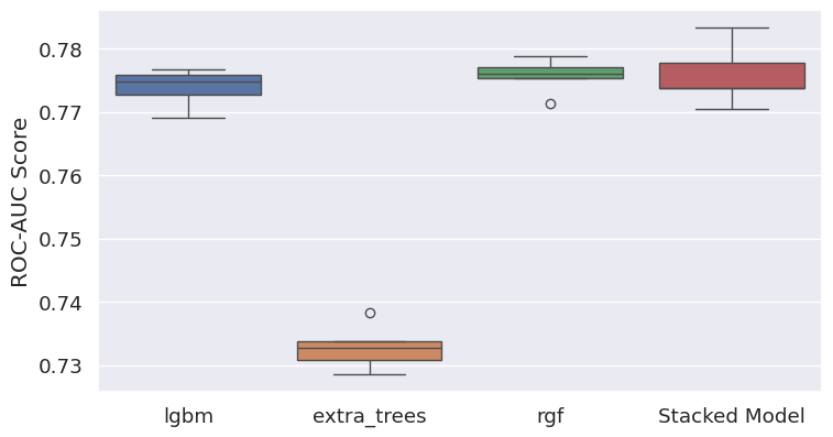 The models’ performance was evaluated alongside a stacked model incorporating all three models (Figure 5). The Regularized Greedy Forest (RGF) model demonstrated the most success, attributed to its superior performance and stability.