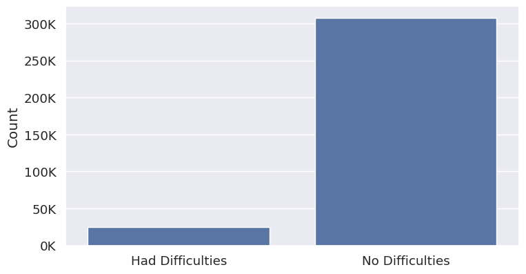 Figure 1: The number of applicants that had difficulties repaying their loan vs. those that had no difficulties.